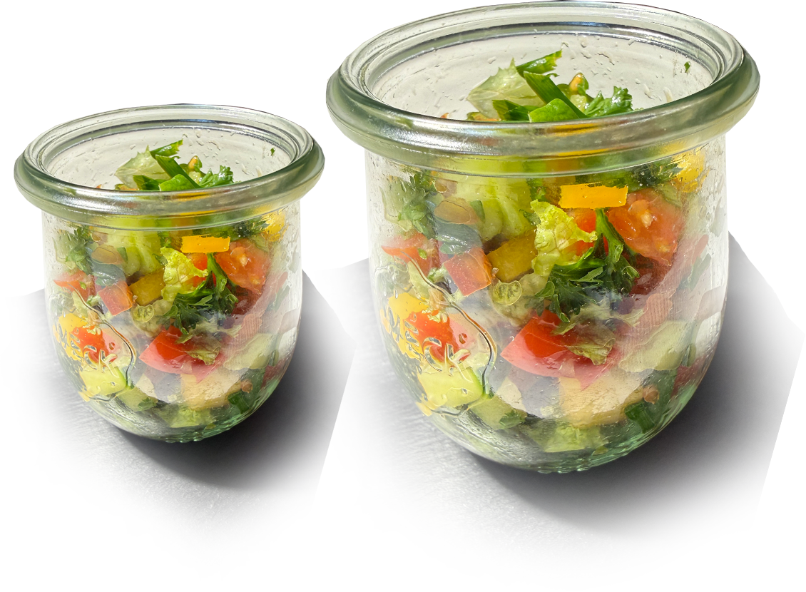 (Mindestbestellmenge: 10 Portionen im Glas, plus Dressing nach Wahl)
